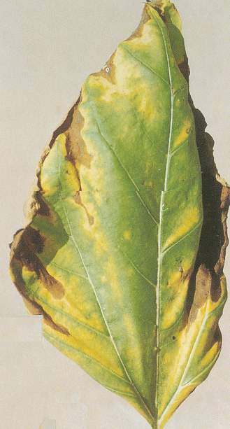 向日葵花盘形成期至于实成熟前易表现症状。先从植株下部叶片的叶肉由浅绿变黄色,后变褐色,叶脉仍保持绿色。病情由下向上发展,最后全株枯死。解剖茎基部和叶柄,其中维管束变褐色,而茎秆上部维管束则未变色。